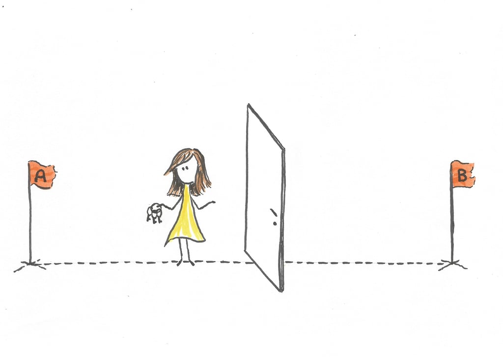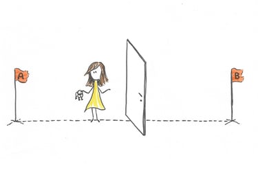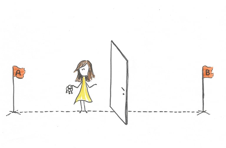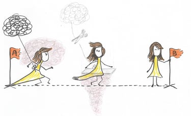 Je propose un accompagnement pour permettre à la personne de sortir du blocage et pouvoir cheminer du point A (blocage / point mort) au point B (remise en mouvement / action).
