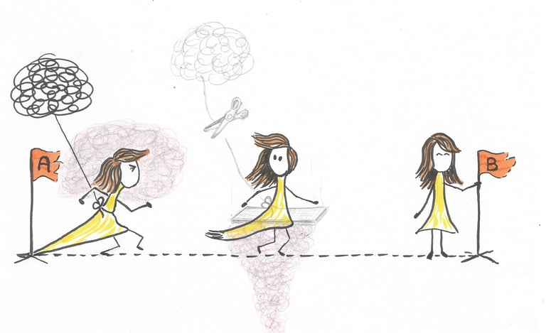 Pour les accompagnements ponctuels : vous permettre de lever le blocage (point A) pour que vous puissiez avancer (point B).