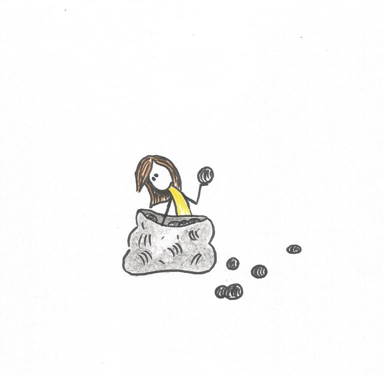 Les cailloux que nous accumulons durant notre vie : charges émotionnelles liées à nos expériences, aux événements marquants vécus, aux états de souffrance...